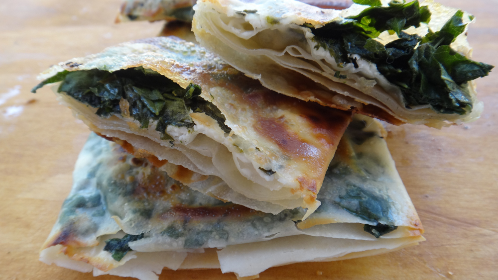 גוזלמה (gözleme) הוא לחם מחבת טורקי ממולא, עשוי מבצק שמרים או מבצק קמח-מים-מלח ללא שמרים. במטבחים האזוריים השונים משתמשים במילויים שונים והמגוון הוא רחב: ירקות למיניהם, עלים ירוקים, עשבי תיבול, גבינות, בשרים ונקניקים. באזור הים האייגאי ממלאים גוזלמה בעיקר בתרד, בעלים ירוקים, בצמחי בר ובעשבי תיבול. הבשלנים הטורקים מכינים גוזלמה גם מהיופקה (yufka) הגמישה הנהדרת שהם קונים טרי ממוכר היופקה הקרוב...