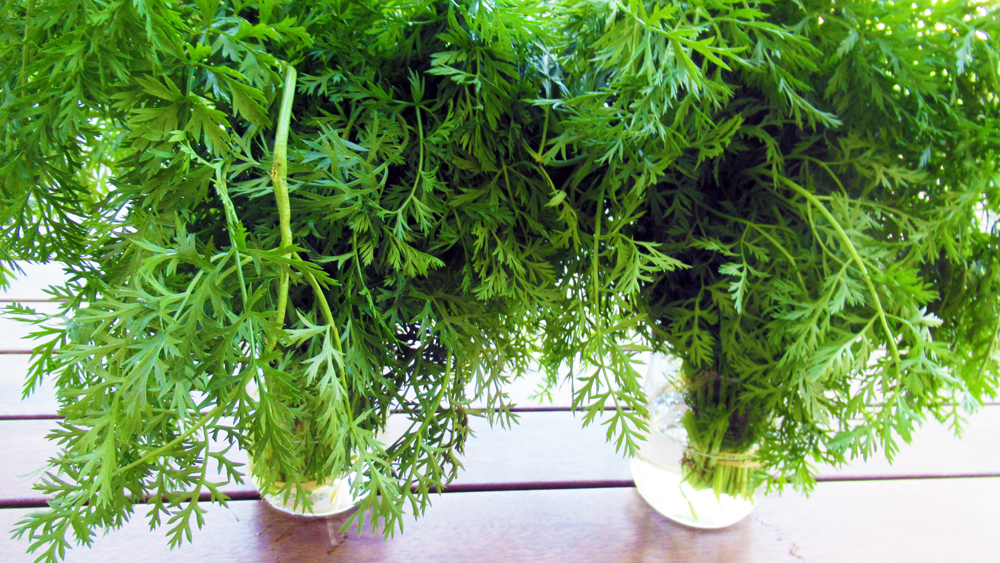 את העלים המחוברים לגזר יש להסיר לפני האחסון כי הם שואבים מהשורש את המים. כמו רוב עשבי תיבול ועלים ירוקים, גם עלי גזר נהנים מאחסון במקרר בתוך צנצנת מים.