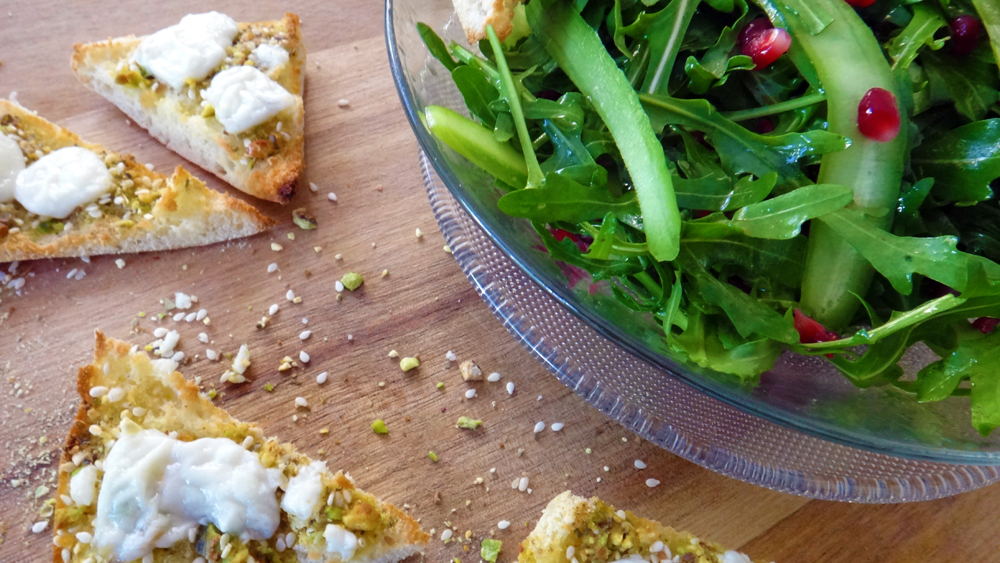 על סלטים וירקות קלויים.