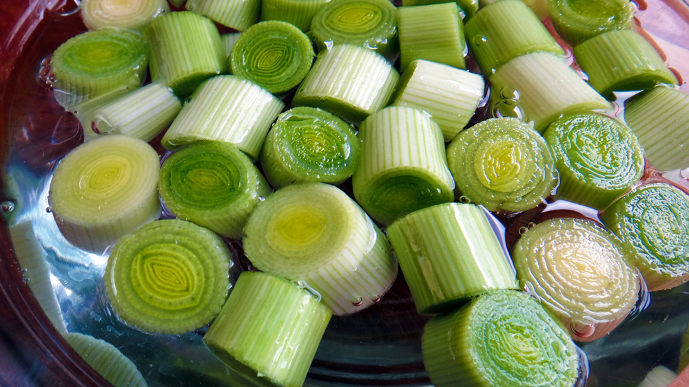 3. שוטפים היטב. כדאי להשרות את הירק במים מהולים ברבע כוס חומץ, כ-20 דקות, ואז לשטוף. מסננים ובודקים שלא נותרו שאריות אדמה.